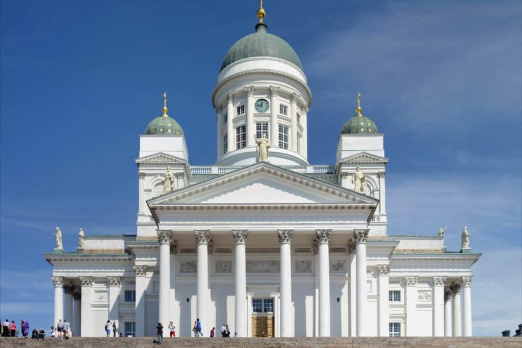 赫爾辛基大教堂 Helsinki Cathedral|城市最經典的地標 純白外牆與綠色圓頂構成赫爾辛基最具代表性的天際線, 也是市中心最適合散步、認識城市氛圍的地方。By Alvesgaspar – Own work, CC BY-SA 3.0