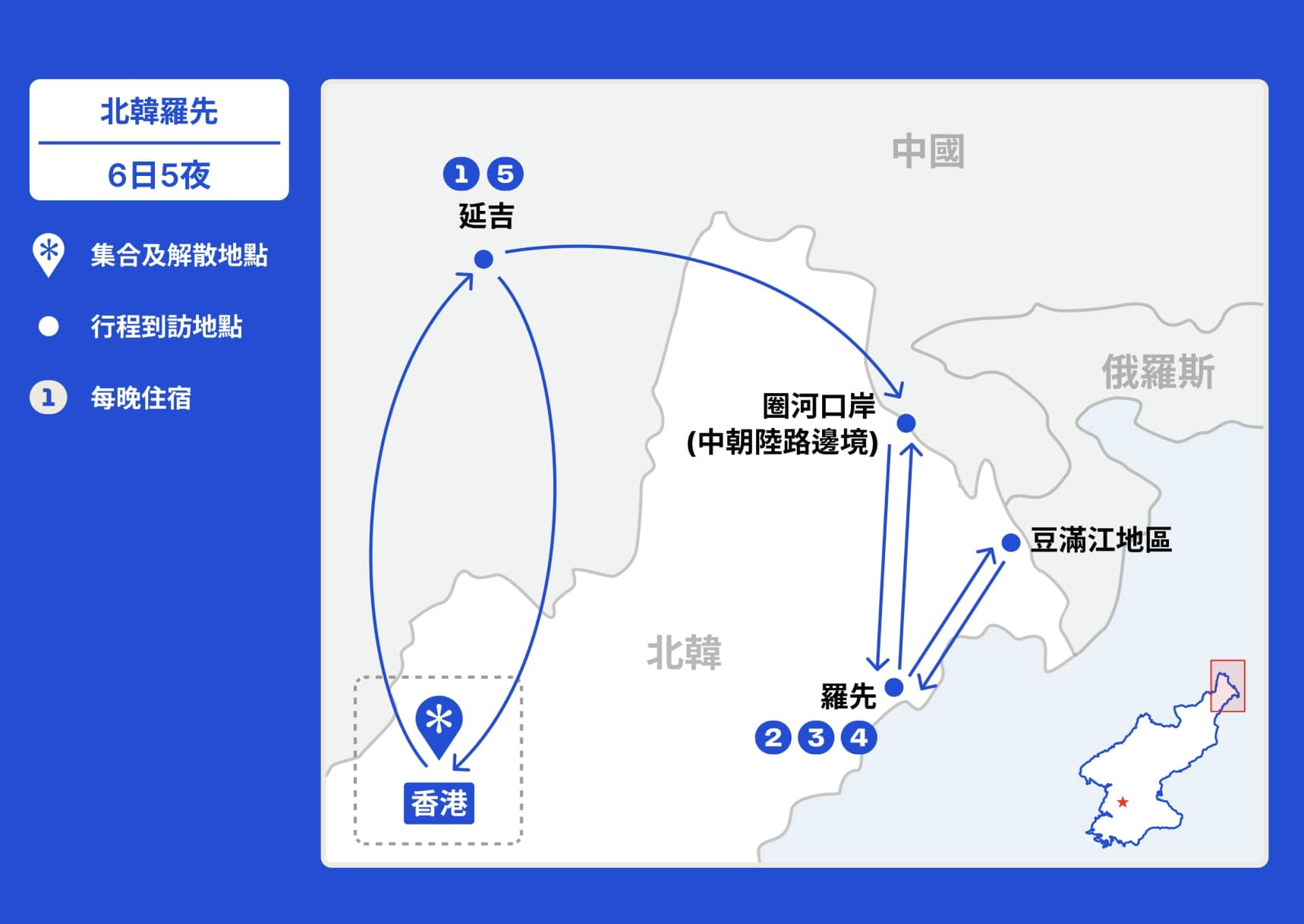 延吉 → 元井 → 北韓羅先